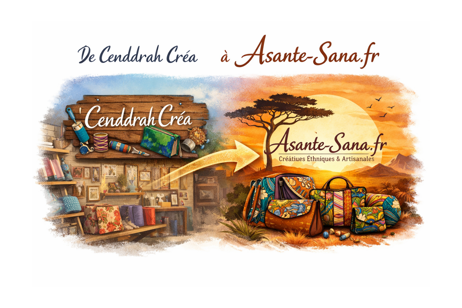 Découvrez l'histoire d'Asante‑Sana.fr, née de Cenddrah Créa, avec la même passion pour l'artisanat et la créativité.