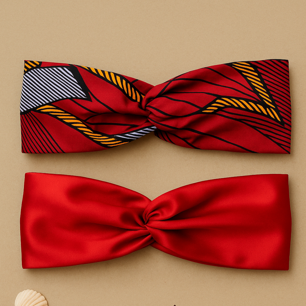 Découvrez Ondes de Tête, une collection de Lots de deux bandeaux confectionnés à la main dans des tissus emblématiques : wax africain, madras antillais, chirimen japonais, cotons océaniens et satin soyeux. Pensés pour s’adapter à toutes les textures de cheveux, ces bandeaux torsadés à élastique intégré offrent maintien, confort et élégance. Portez-les au quotidien ou pour vos moments d’exception – chaque modèle révèle une double facette de votre personnalité.