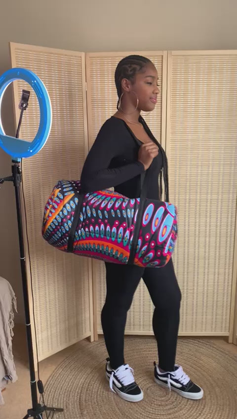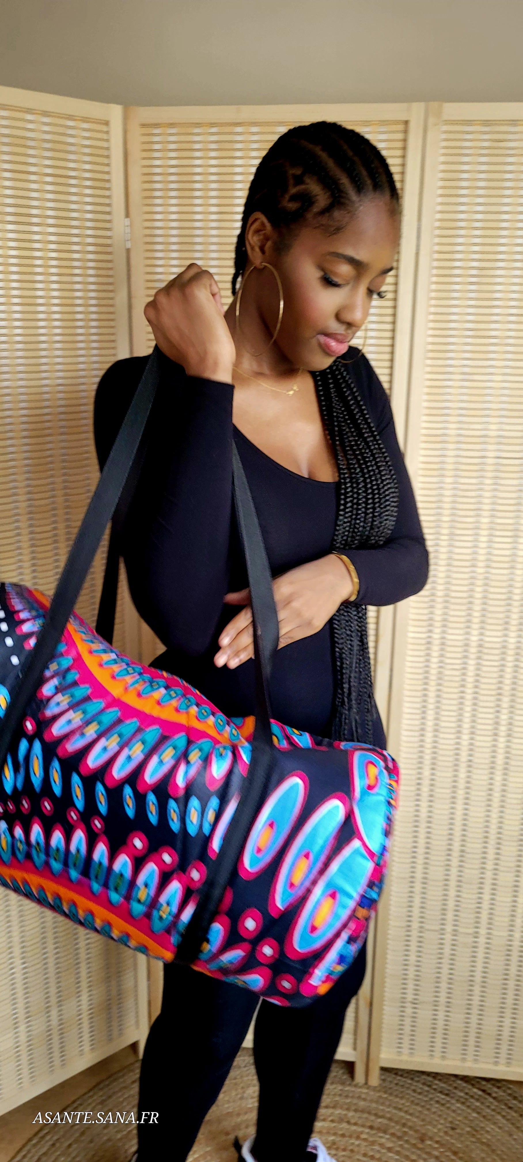 Pensés pour accompagner chaque pas de votre chemin intérieur, les sacs Polochon allient confort, élégance et artisanat textile. Leur format long et souple permet d’y glisser un tapis de yoga, une tenue de sport ou même une couverture de méditation. Chaque modèle est fabriqué à la main dans un tissu wax, shirimen ou pacifique soigneusement sélectionné, doublé d’un coton résistant, avec une petite pochette à chaussures assortie, fermée par un lien en tissu noué.