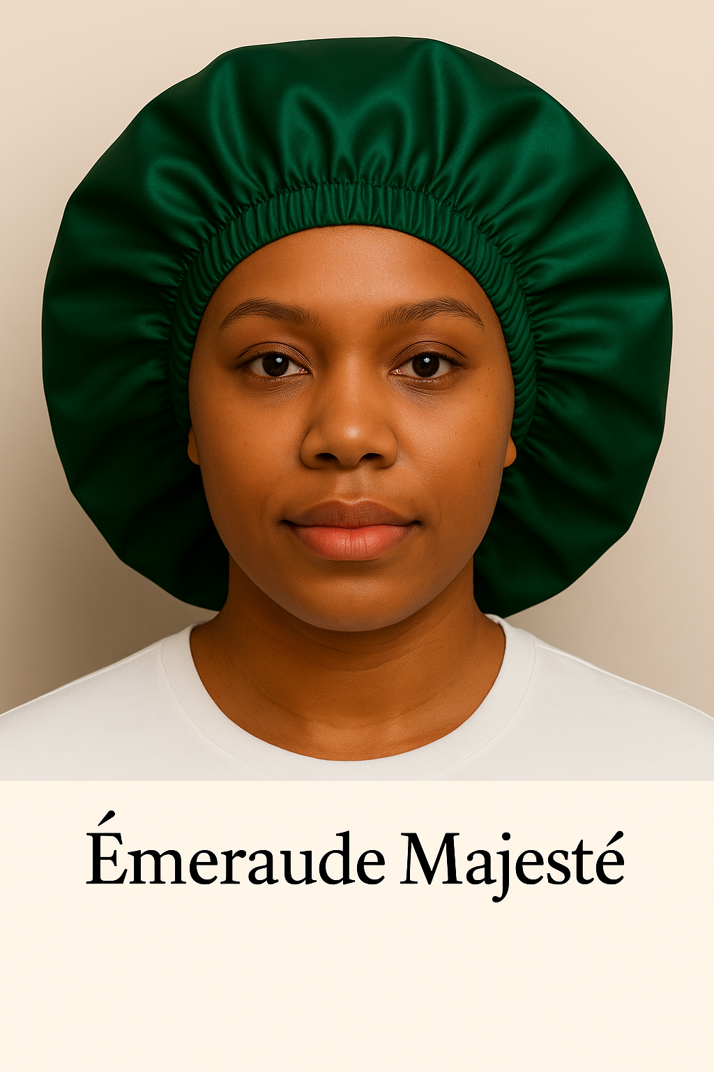 La collection Couronne de Nuit réunit de grands bonnets en satin haut de gamme, conçus pour envelopper vos cheveux dans un écrin de douceur pendant votre sommeil.