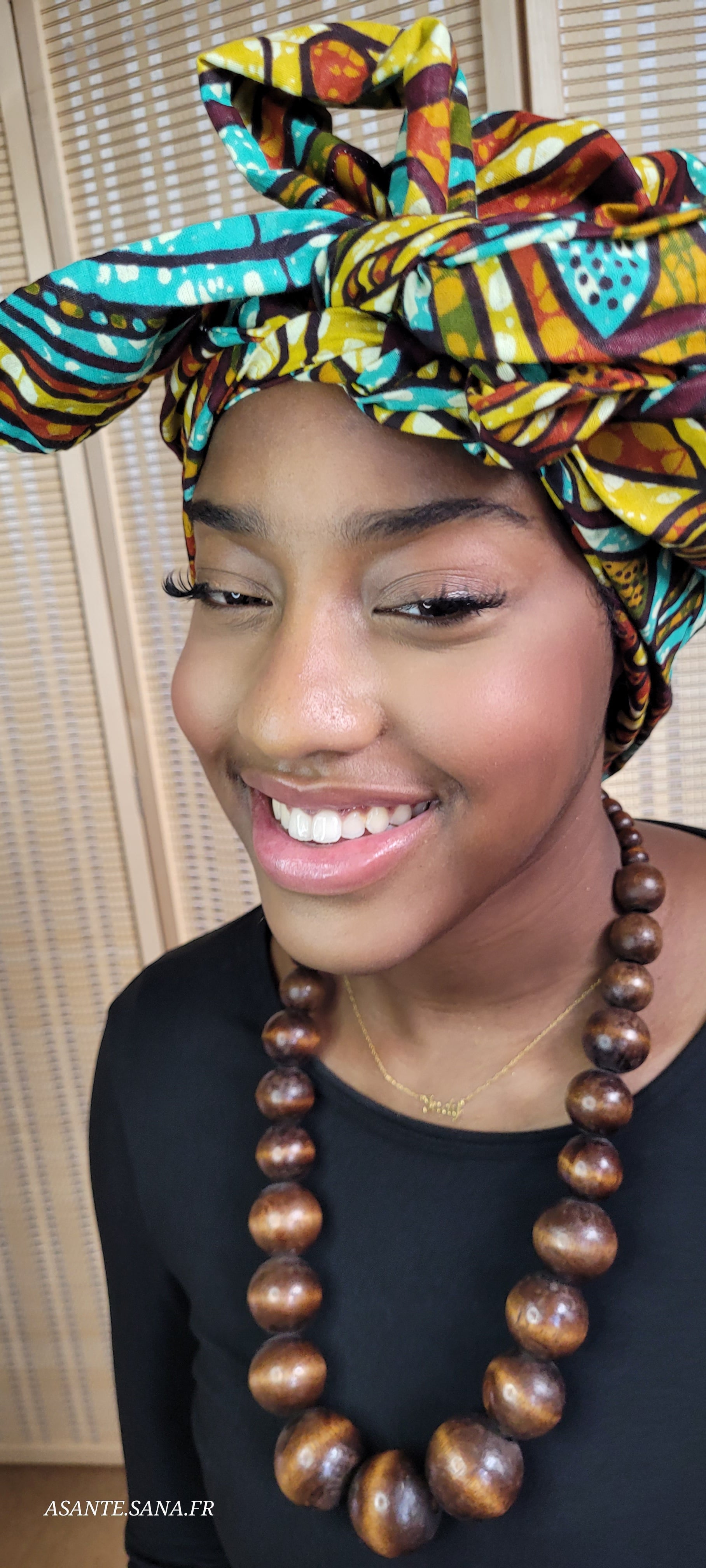 des wraps et foulards (hair wraps et carrés madras) à nouer selon l’inspiration,