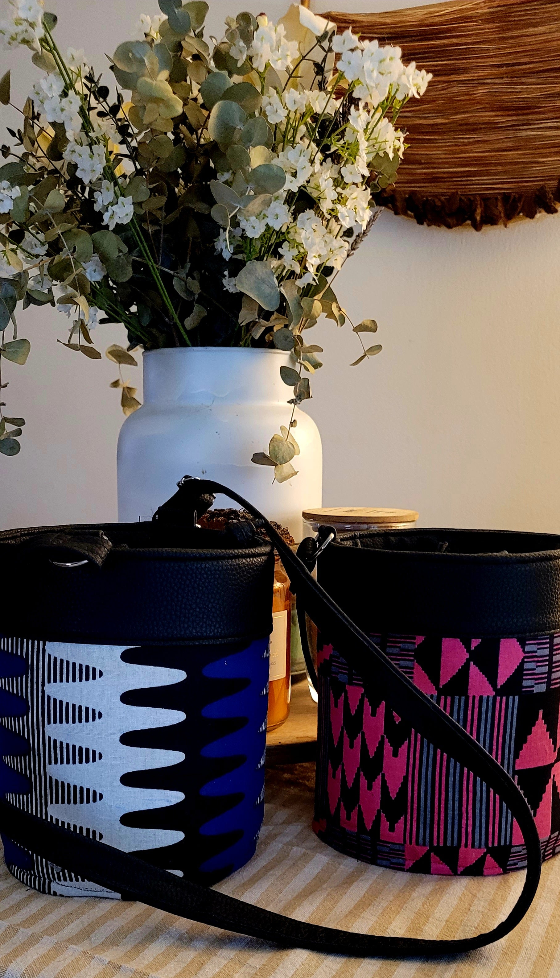 Élancé, audacieux, magnétique : ce sac incarne une féminité moderne et solaire. Réalisé en wax aux motifs graphiques puissants, du madras envoutant il marie cuir noir et tissu ethnique dans un format tubulaire pratique et chic. Sa bandoulière ajustable en fait l’allié de toutes vos sorties.
