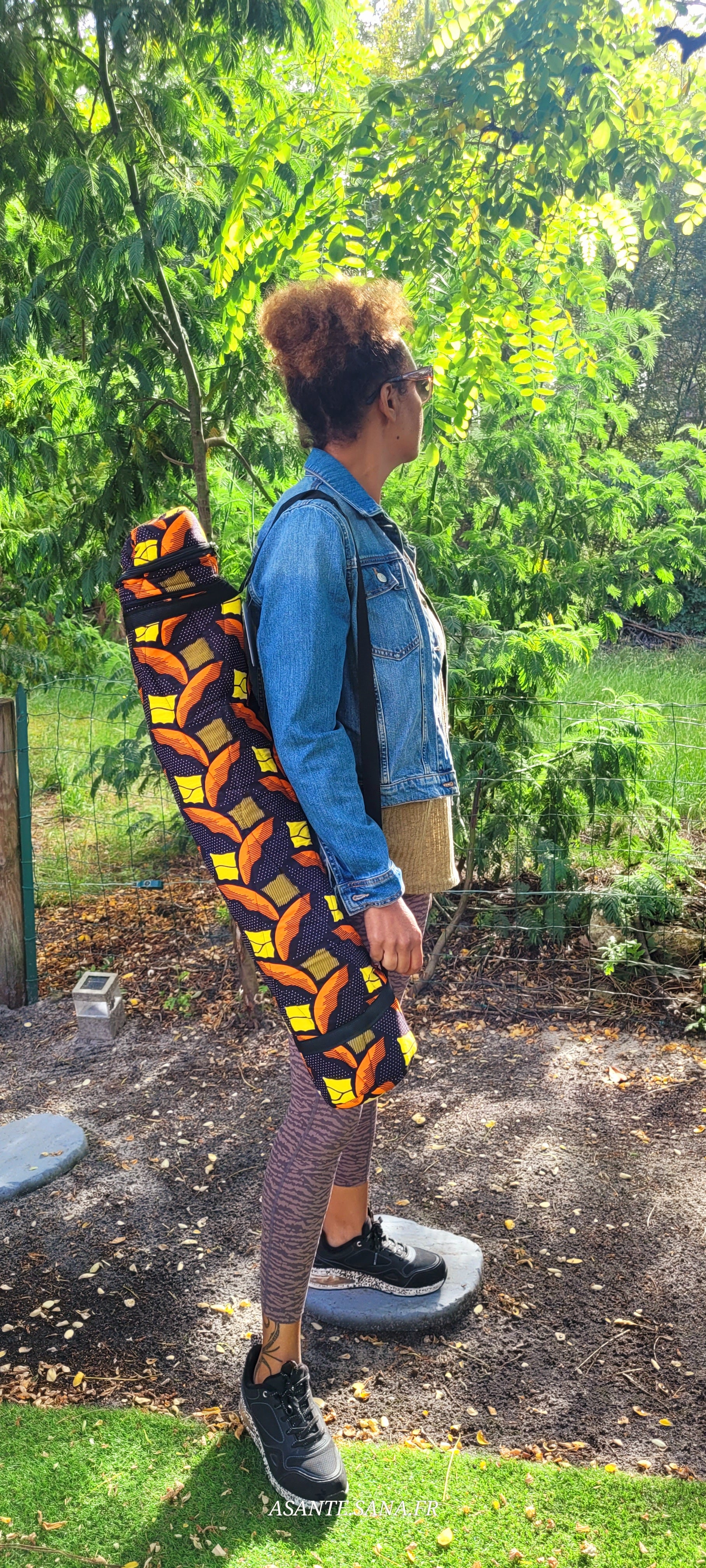 La collection Racines Nomades ( Sac tube matelassé pour tapis de yoga) célèbre la beauté du mouvement et l’âme des tissus du monde. Chaque sac à tapis de yoga est entièrement cousu main dans notre atelier, en série limitée, à partir de tissus emblématiques : wax , madras antillais, chirimen japonais, ou tissu fleuri océanien.