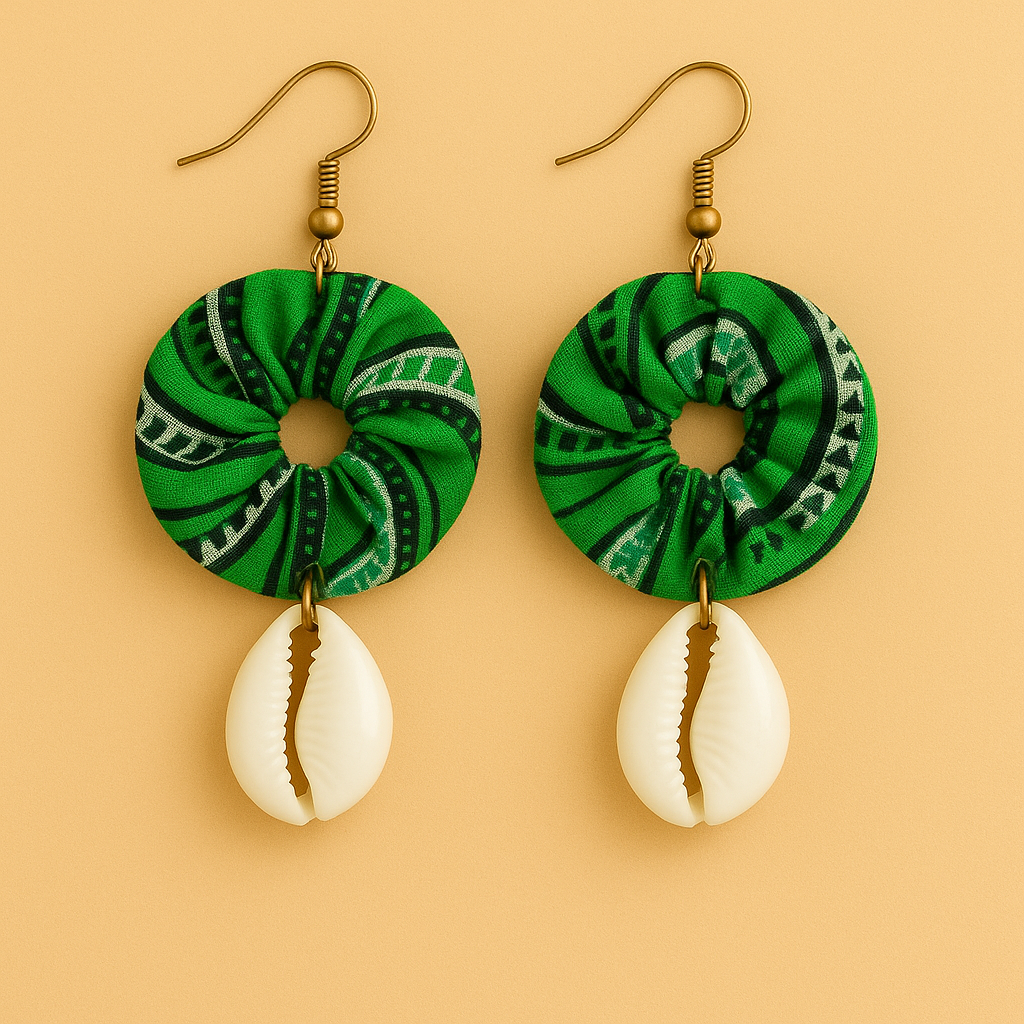 Chaque bijou est conçu à la main à partir de tissus emblématiques – wax, madras, chirimen japonais, ou tissus océaniens – pour offrir une touche vibrante, colorée et unique à votre style.