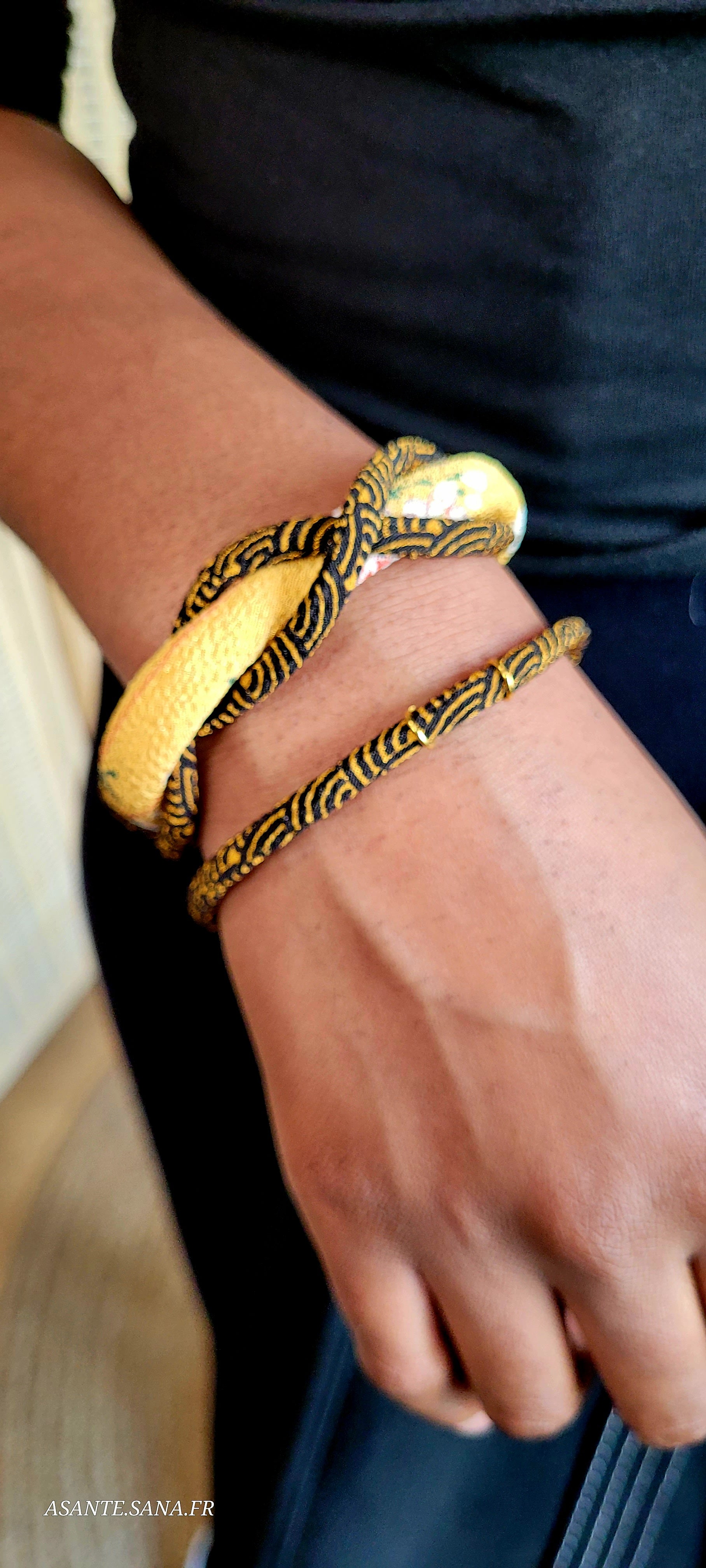 Chaque bijou est conçu à la main à partir de tissus emblématiques – wax, madras, chirimen japonais, ou tissus océaniens – pour offrir une touche vibrante, colorée et unique à votre style.