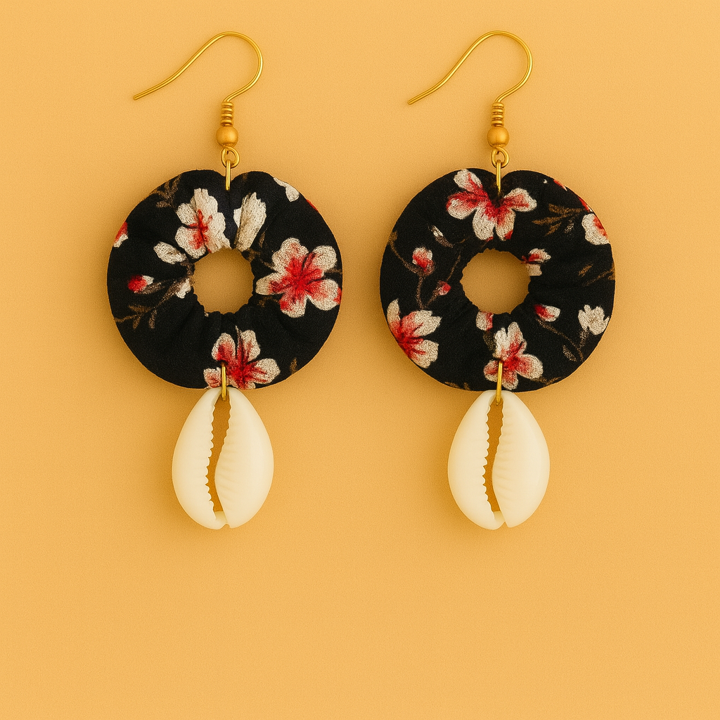 Chaque bijou est conçu à la main à partir de tissus emblématiques – wax, madras, chirimen japonais, ou tissus océaniens – pour offrir une touche vibrante, colorée et unique à votre style.