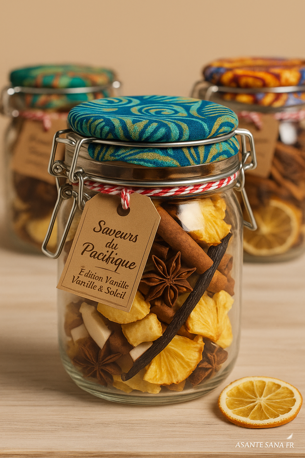 Confectionnés à la main, habillés de tissus authentiques et présentés dans des bocaux à clapet réutilisables, ils deviennent de véritables cadeaux sensoriels.