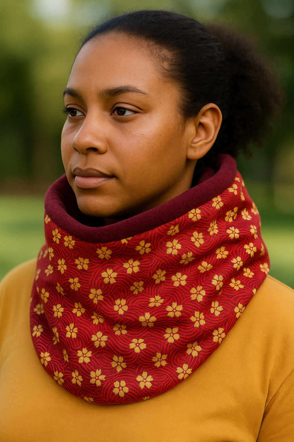 Chaque snood est une création artisanale, cousue avec soin dans notre atelier, dans un esprit de mode éthique et métissée.